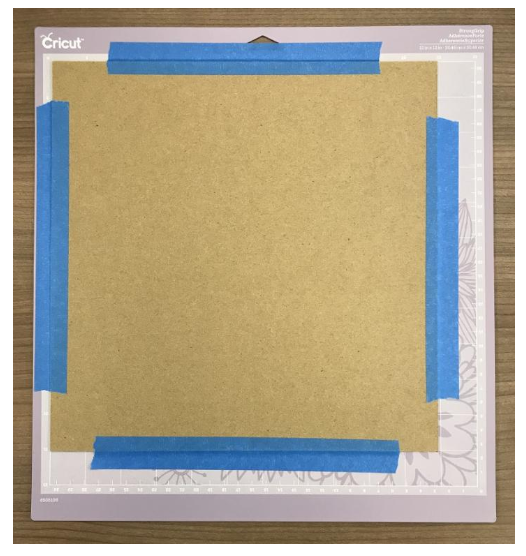 - الصق جوانب المادة الأربعة على البساط (يُوصى باستخدام شريط لاصق أو شريط طلاء أزرق).