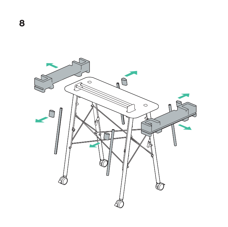 - Paina jarrua alaspäin lukitaksesi helposti liukuvat pyörät ja estääksesi telineen liikkumisen.