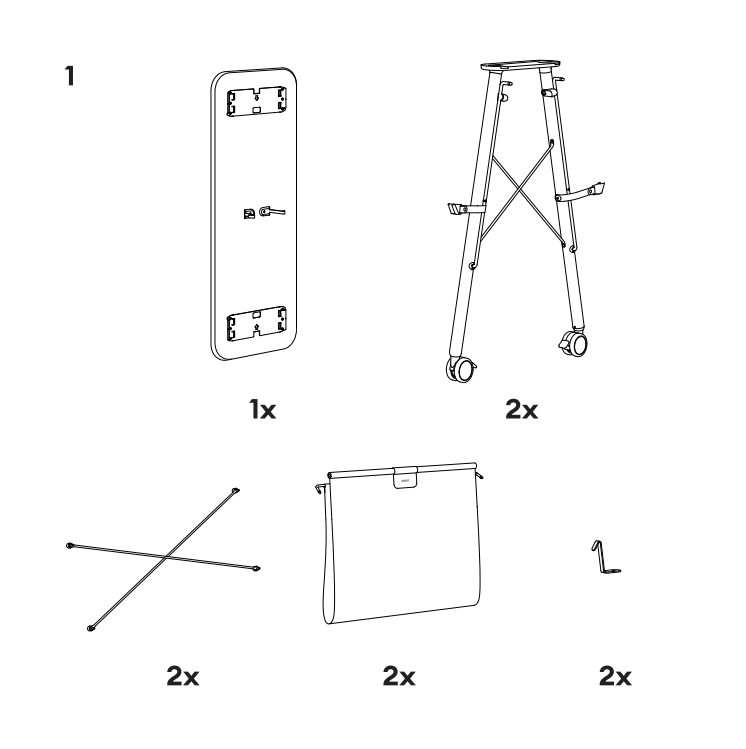 - 2 identtistä ristikkäistangon sarjaa peukaloruuveilla ja aluslevyillä