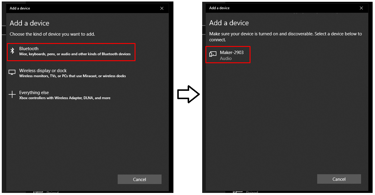 - Seleziona Bluetooth e attendi che il computer rilevi la tua macchina Cricut. Seleziona il codice del dispositivo Bluetooth della macchina dall'elenco. Il codice del dispositivo Bluetooth della macchina è stampato o inciso sulla macchina, vicino al numero di serie. È normale che le macchine Cricut vengano visualizzate come dispositivo audio in questo elenco.