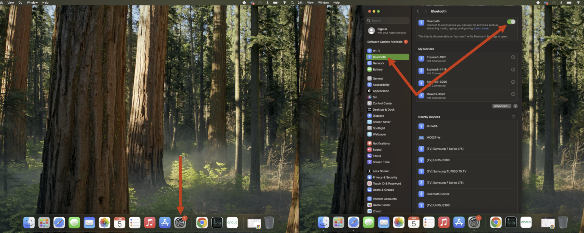 重要:パソコンでmacOS Sonoma ( 14 )以降を実行しており、CricutデバイスをBluetoothでペアリングする際に問題が発生している場合は、次のセクションにアクセスしてサポートを受けてください。macOS Sonoma ( 14 )以降でBluetoothを有効にする方法。