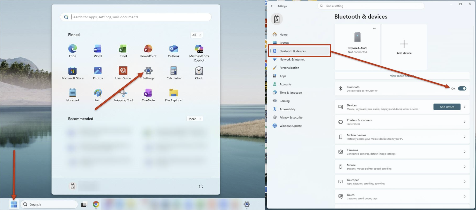 - [スタート]メニューから[設定](歯車アイコン)を選択し、[デバイス]オプションを開きます。