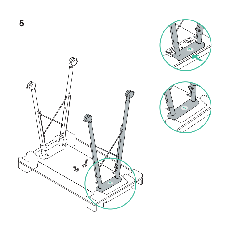 - Odwróć stojak tak, aby był wyprostowany, zdejmij opakowanie z nóg i stań na górze.