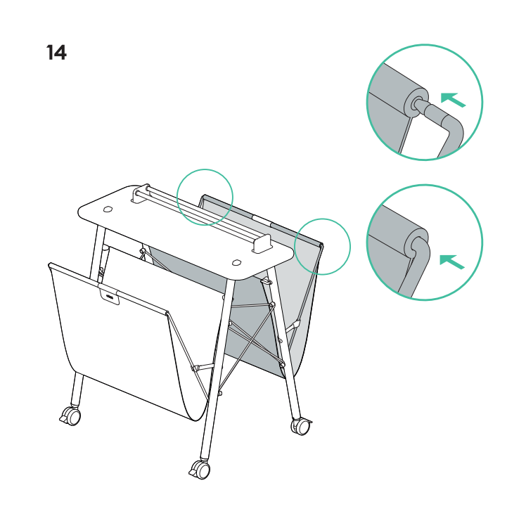 - Powtórz tę czynność dla drugiego kosza zaczepowego: umieść tylny pręt za dwiema nogami i wepchnij metalowe pręty w punkty mocowania.