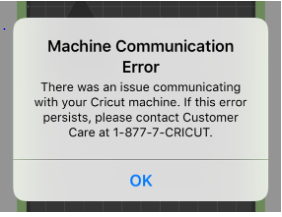 หากได้รับข้อความแสดงข้อผิดพลาดนี้ให้ถอนการติดตั้งแอป iOS ของ Cricut Design Space และแอปพื้นฐานของ Cricut (หากติดตั้งบนอุปกรณ์ของคุณในขณะนี้) แล้วติดตั้งใหม่จาก App Store หากยังมีข้อผิดพลาดโปรดติดต่อศูนย์ดูแลสมาชิกเพื่อขอความช่วยเหลือ