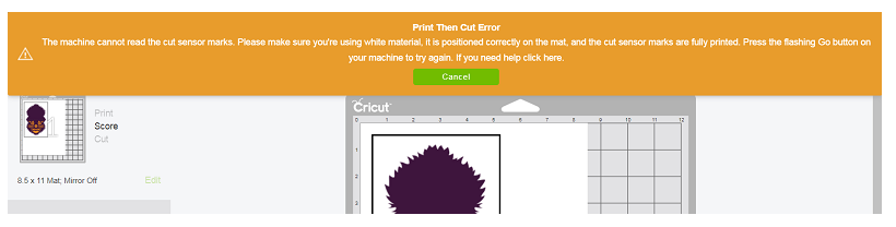 Design Space, makinenin kesme sensörü işaretlerini okuyamadığını söylediğinde, bu, kesmeye çalıştığınız görüntünün Yazdır ve Kes olarak ayarlandığı anlamına gelir. Makine, görüntüyü doğru bir şekilde kesmesini sağlayacak Bastır ve Kes sensör işaretlerini arıyor. Bastır ve kes yapmayı düşünmüyorsanız ve yalnızca kesmeyi tercih ediyorsanız, görüntünüzü Bastır ve kes olarak kolayca değiştirebilirsiniz. Görüntü İşlemini değiştirmek için burada bulunan talimatları izleyin.